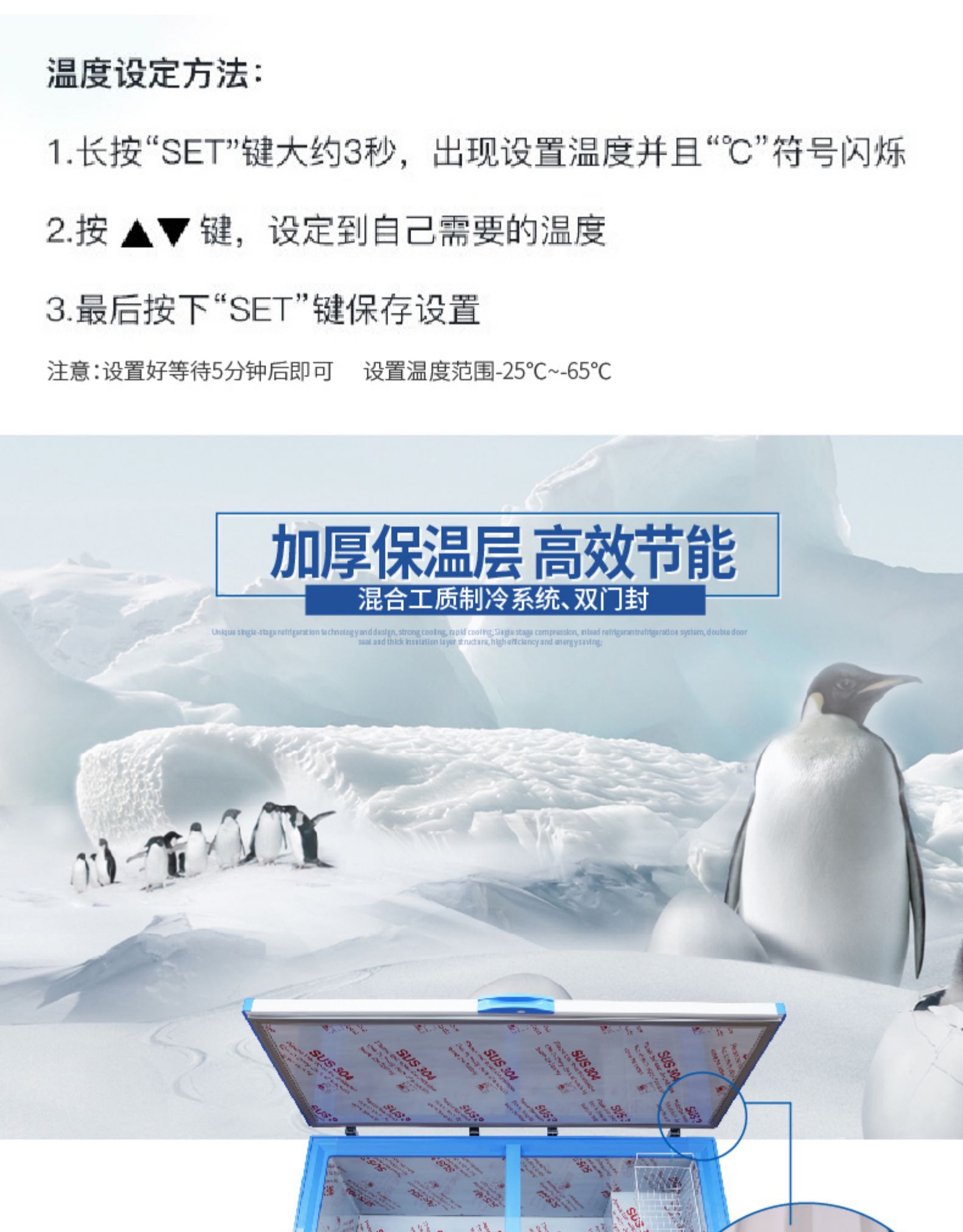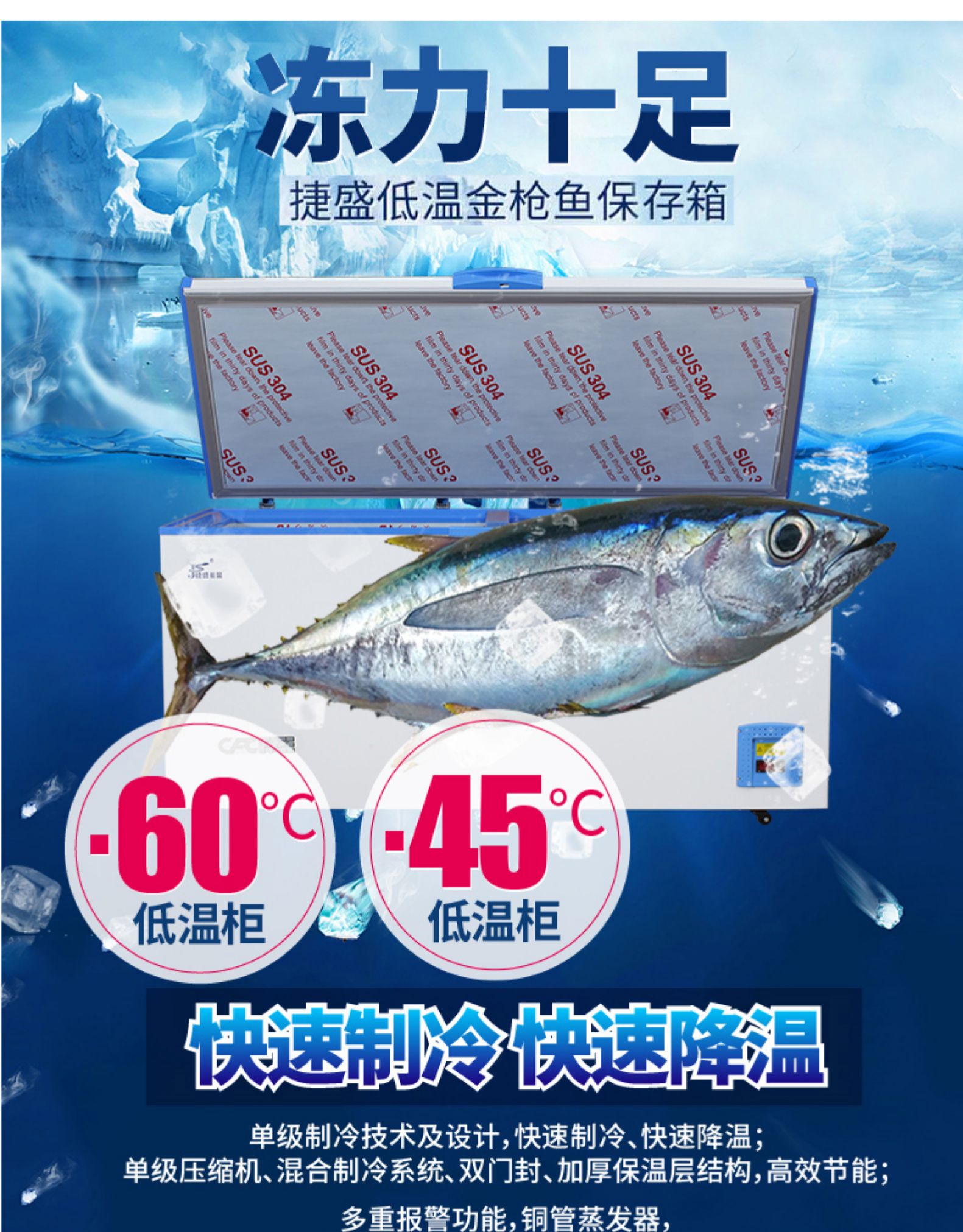 湖南捷盛-40度超低溫冷柜小型低溫冰柜商用臥式大型實驗海鮮保存冰箱
