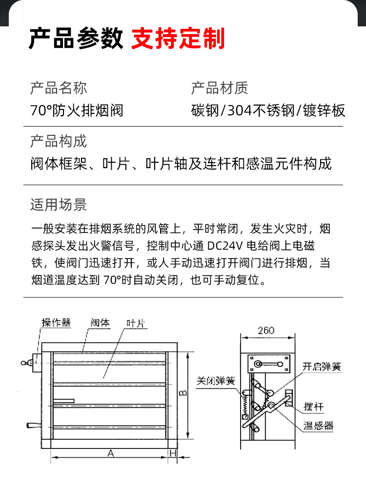艾科廠家定制排煙防火閥-70度280度防火閥消防排煙電動風管防火閥批發(fā)
