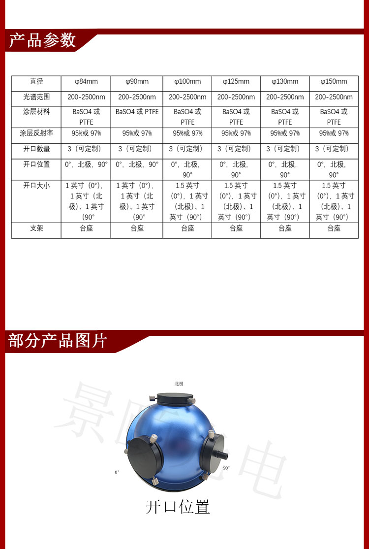 積分球參數(shù)-PTFE-多種內(nèi)徑可選-可更換不同配件
