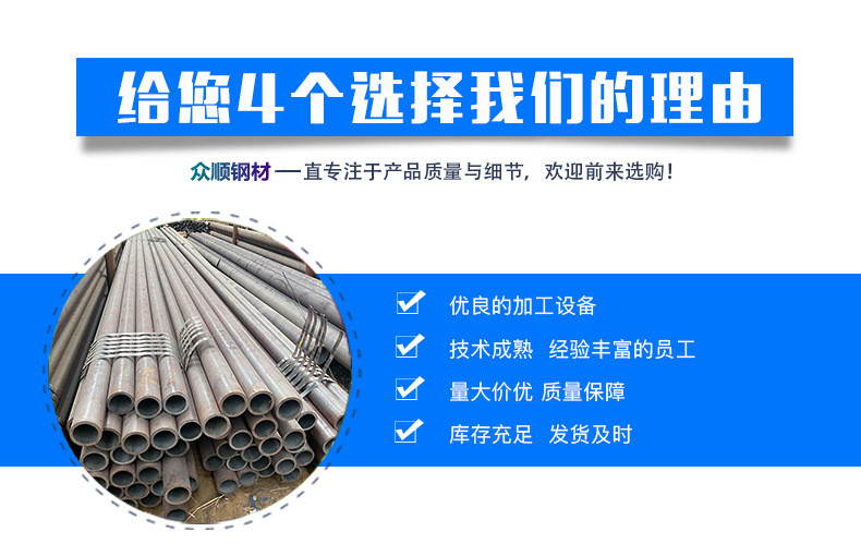 聊城市眾順鋼材有限公司(山東無縫鋼管廠、無縫鋼管廠家)位于中國較大的無縫鋼管基地山東鋼管之都——山東聊城。無縫鋼管生產(chǎn)廠家生產(chǎn)銷售無縫鋼管、合金鋼管、方管,冷拔管、高壓鍋爐管、q345b無縫鋼管、16mn無縫鋼管、熱擴(kuò)鋼管、厚壁鋼管、厚壁無縫鋼管、厚壁無縫管、大口徑鋼管、大口徑無縫鋼管、大口徑無縫管、焊管、方矩管、不銹鋼管等各種鋼管。