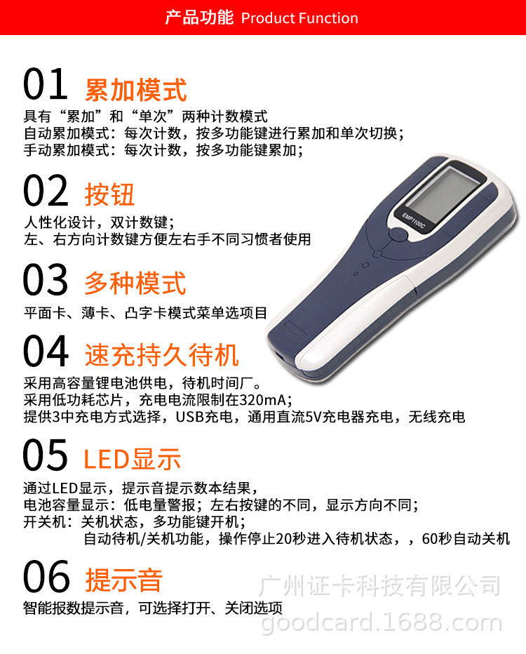 EMP-1100C手持數(shù)卡器社??c卡機銀行卡計數(shù)機智能-語音讀卡機