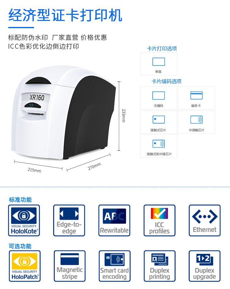 XR160證卡打印機(jī)員工卡-工作證會(huì)員卡制卡機(jī)-ID卡工牌-IC卡片證卡機(jī)