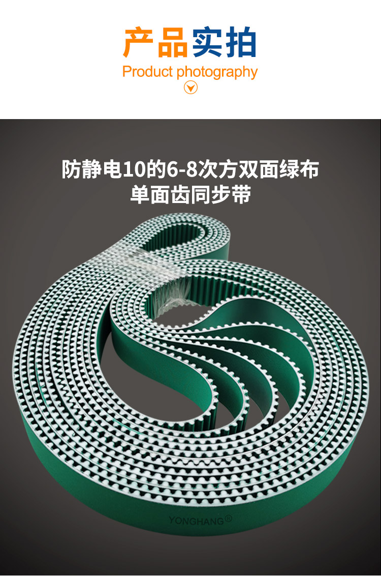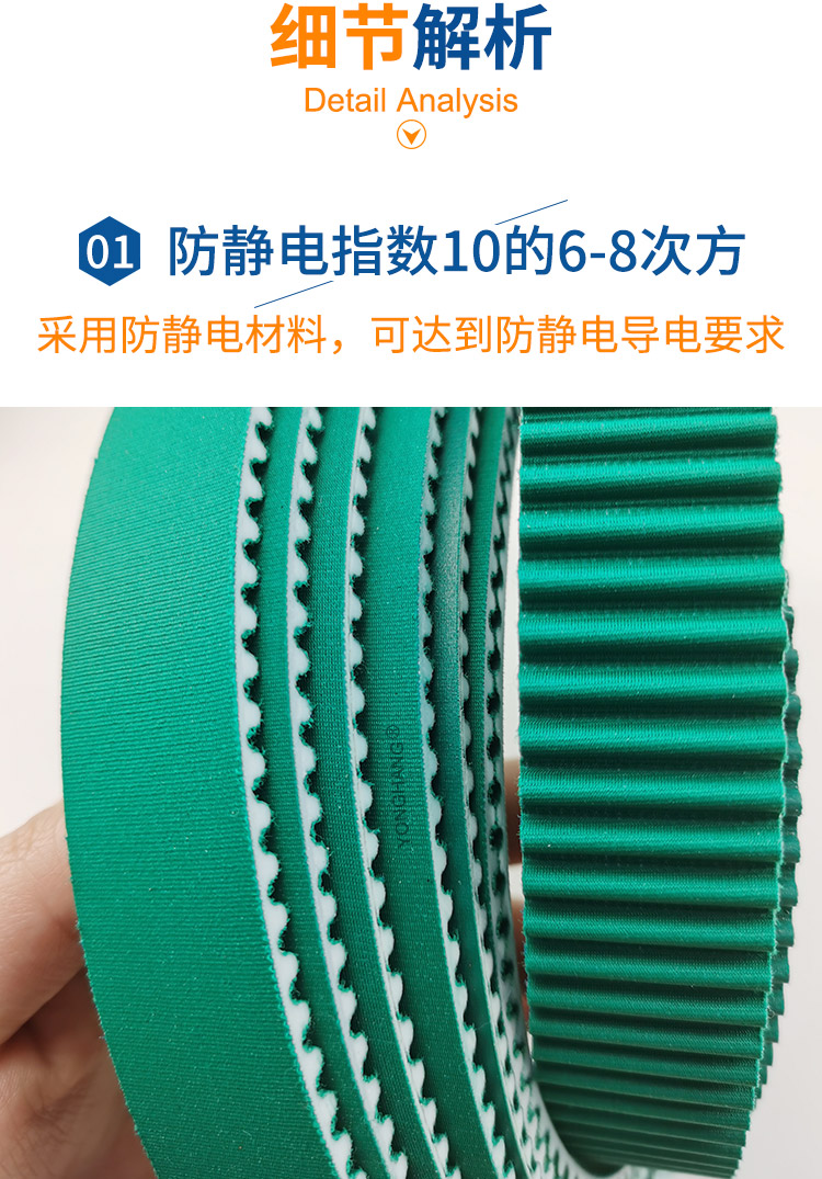 永航防靜電同步帶導(dǎo)電同步皮帶,可做防靜電材質(zhì),或加防靜電雙面綠布,消音防滑!防靜電指數(shù)為10的4-6次方或10的6-8次方!以防靜電、導(dǎo)電高分性體為表面載物層,骨架材料為鋼絲線芯,強度高,廣泛應(yīng)用于電子行業(yè)、無紡布行業(yè)等有防靜電、導(dǎo)電要求的物料(品)傳送和工藝加工,靜電噴涂流水線等~齒形可做雙面齒或單面齒,各種規(guī)格按需定制~歡迎在線咨詢或來電:13650812850!