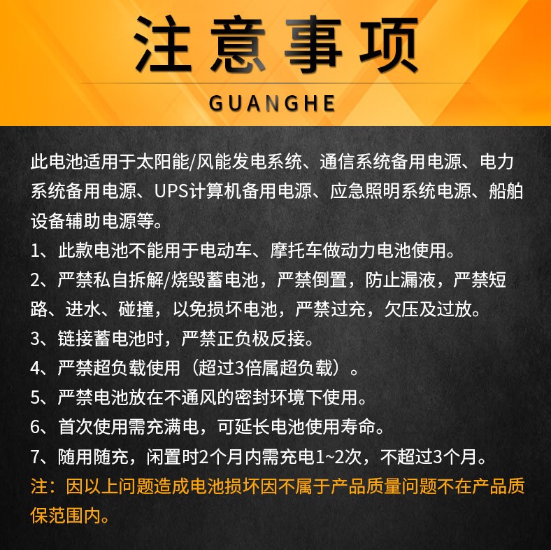 3、蓄電池出現(xiàn)異常時(shí),應(yīng)與廠家聯(lián)系,禁止私自拆卸維修。