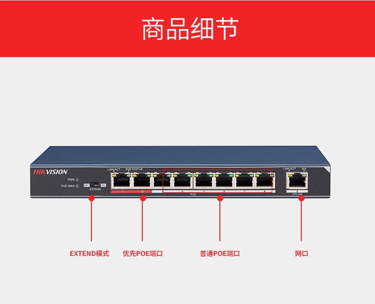 DS-3E0109P-S9口百兆非網(wǎng)管型PoE交換機,8百兆PoE電口,1百兆電口