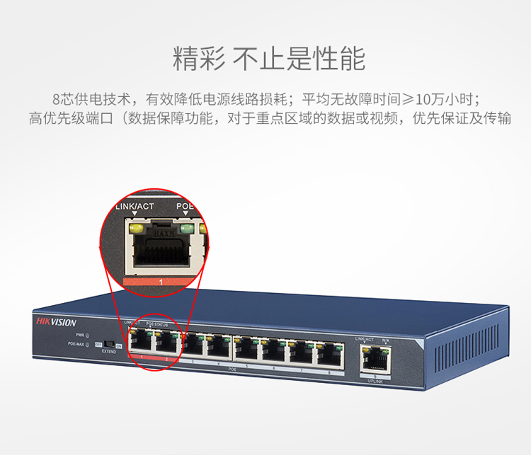 設備支持網(wǎng)絡延長(EXTEND)模式,開啟后,使用超五類及以上網(wǎng)線時,對應端口的數(shù)據(jù)傳輸和供電距離最遠可達250米;PoE支持8芯供電技術(shù),有效降低電源線路損耗;支持重要端口數(shù)據(jù)保障功能,對于重點區(qū)域的數(shù)據(jù)或視頻,優(yōu)先及傳輸。