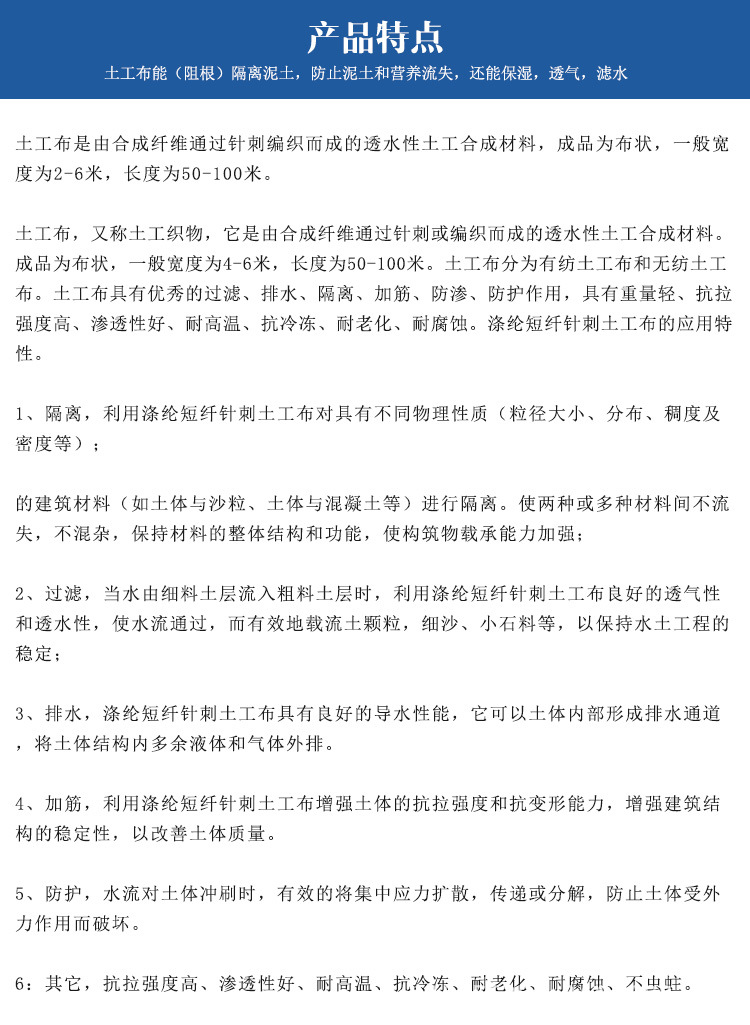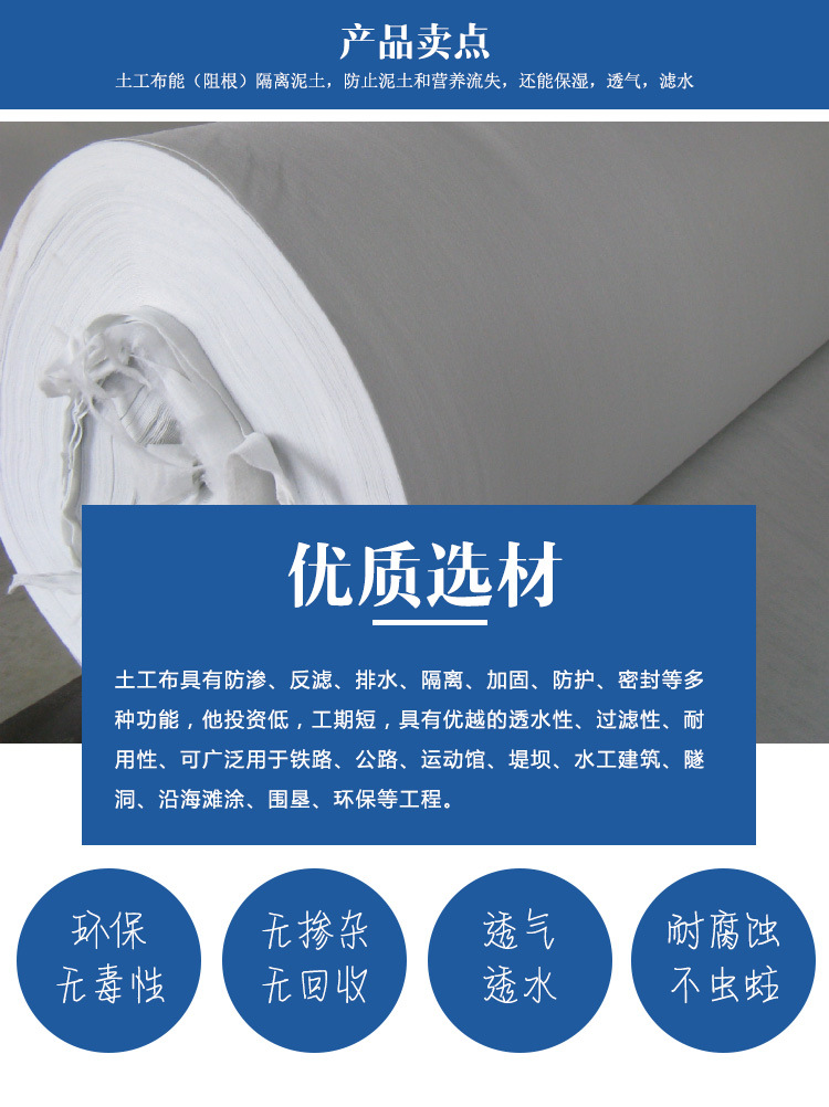 主要用途 用于公路、鐵路、堤壩、沿海灘涂等工程的加筋、反濾、隔離及排水,特別適用于鹽堿沼澤、垃圾填埋場