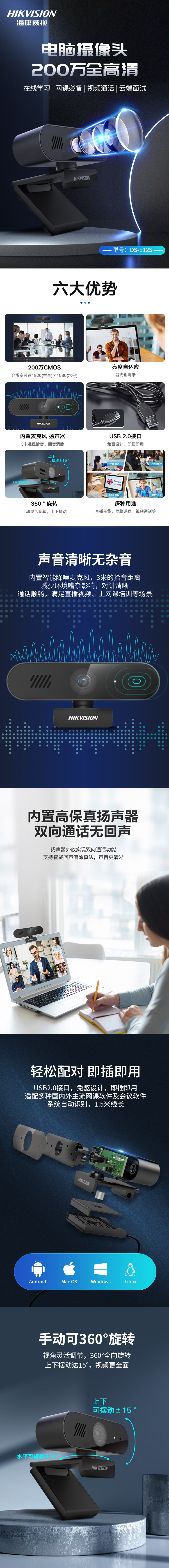 ??低旸S-E14a電腦攝像頭筆記本臺式機高清外置家用網課會議USB攝影頭