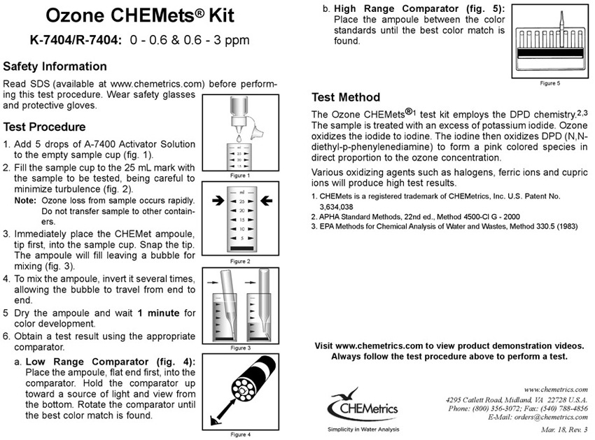 英文描述 | Ozone — CHEMets? Visual Kit |