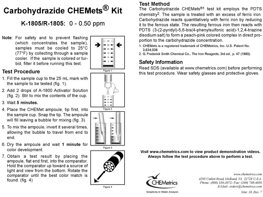 英文描述 | Carbohydrazide—CHEMets? Visual Kit |