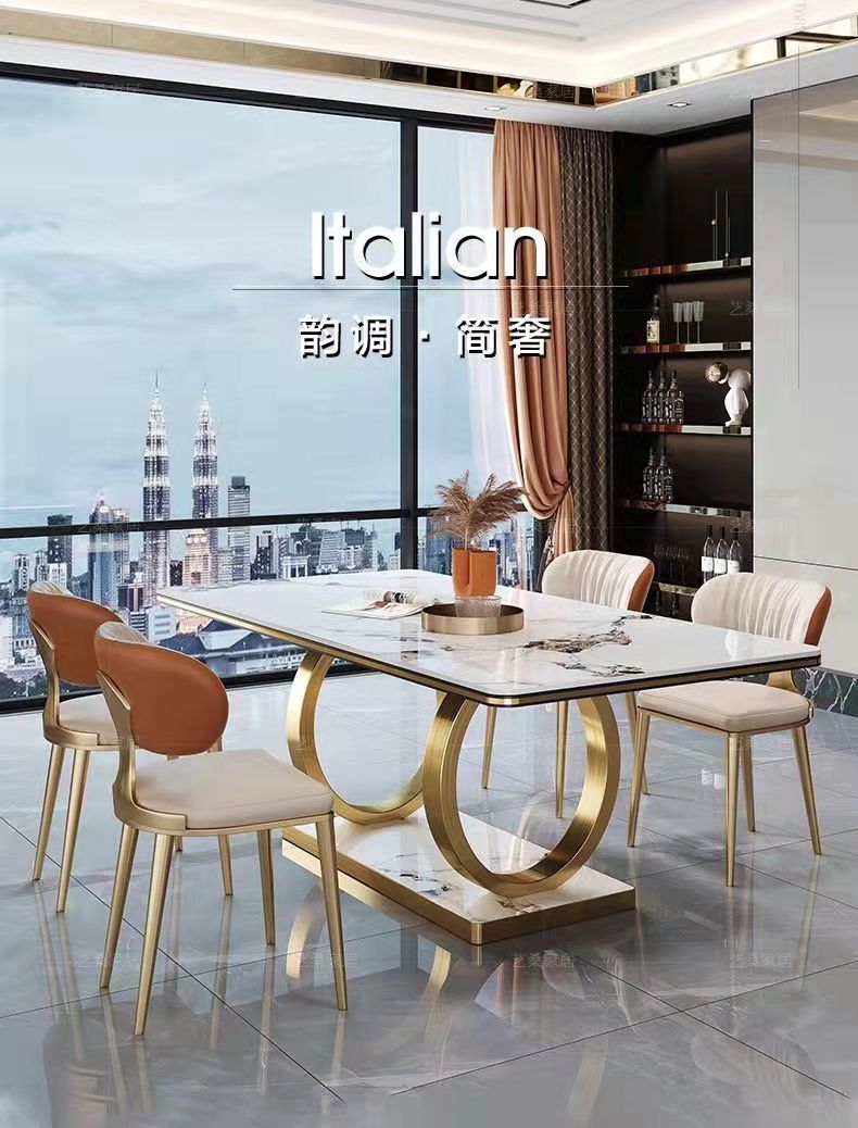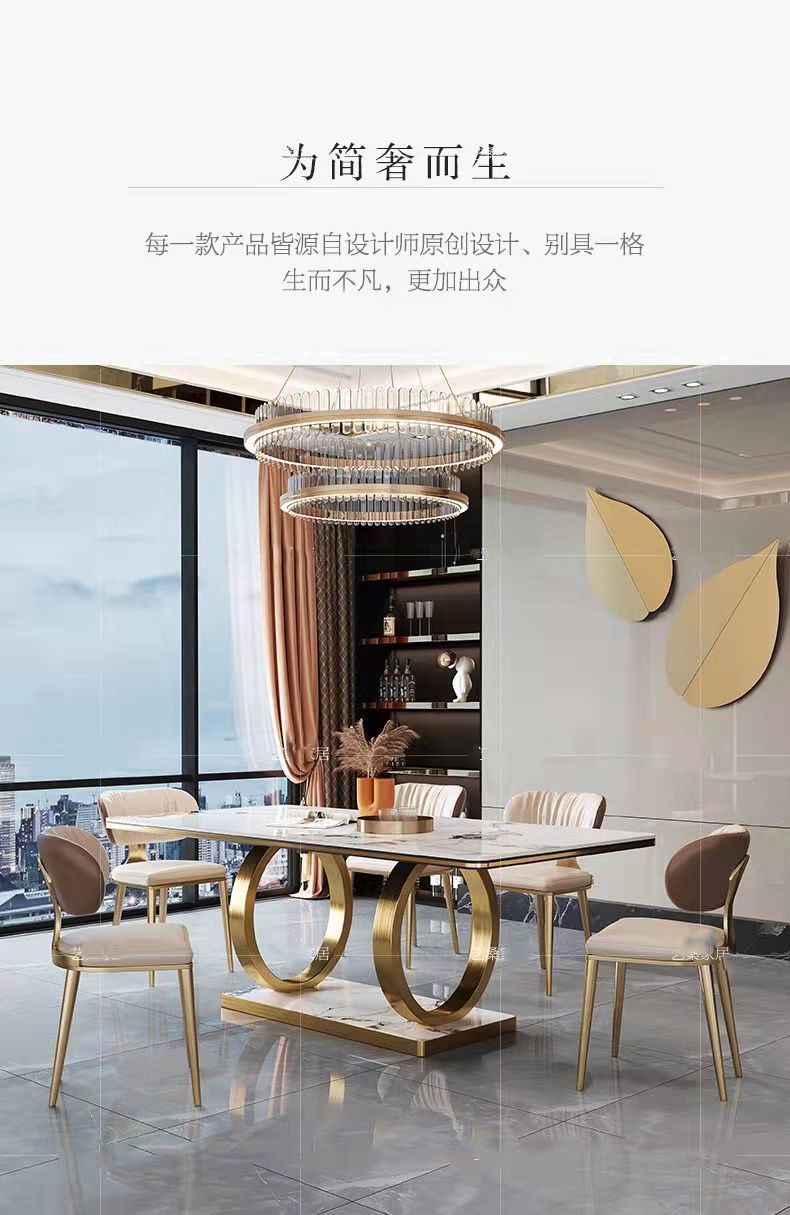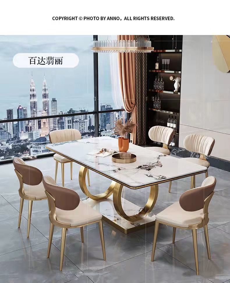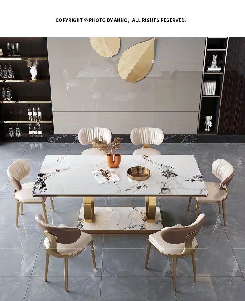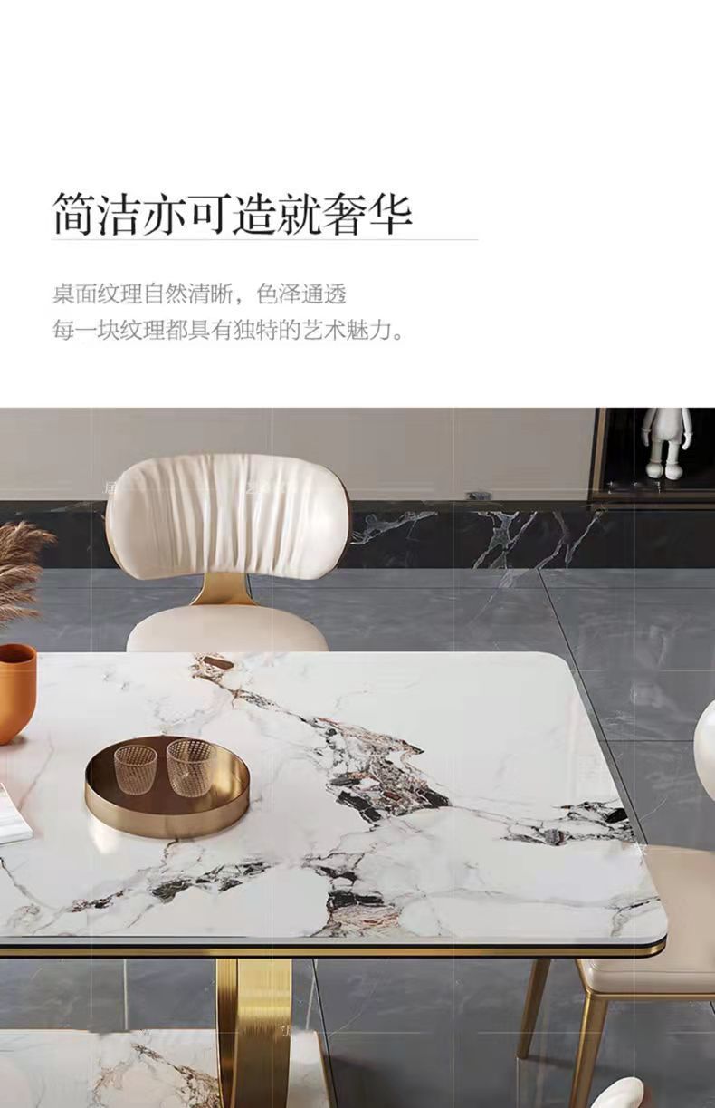 鼎富北歐輕奢亮光巖板餐桌簡約長方形吃飯桌子DF-22080