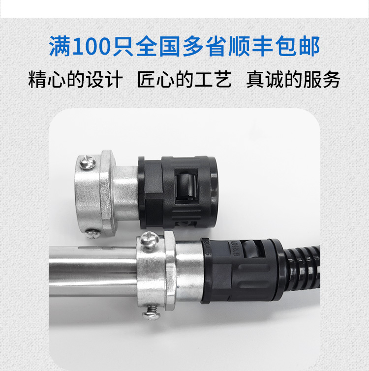 使用方法:接鍍鋅鋼管連接處,采用3個(gè)頂絲固定鋼管。另外自固接頭也可以定做,直接卡上鍍鋅鋼管,用迫緊螺帽鎖緊即可; 接塑料波紋管部分,直接快插或用迫緊螺帽鎖緊,使塑料波紋管和鍍鋅鋼管之間完美連接和密封作用(鋼管那頭采用自固鎖緊密封性能更好),滿足工程和設(shè)備技術(shù)上需要