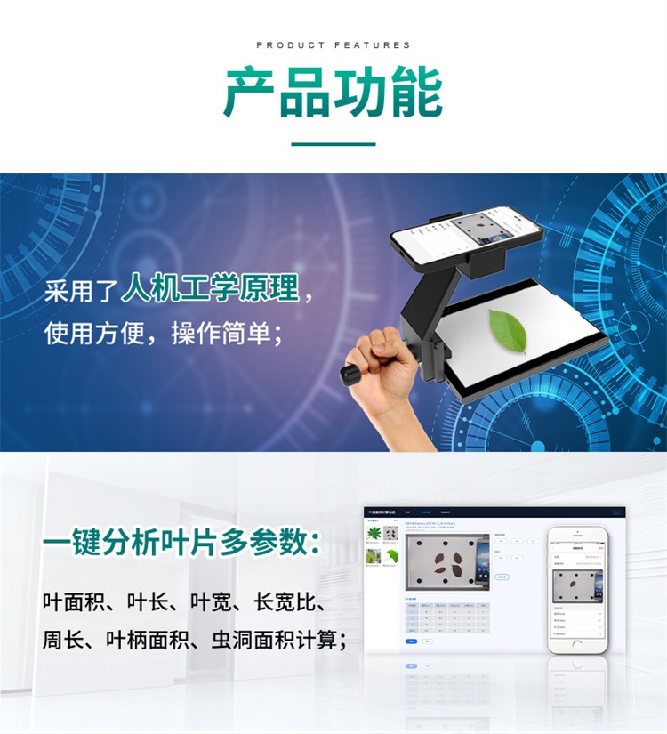 拍照式葉面積測定儀圖像采集儀植物蟲洞數(shù)量葉片周長面積測量儀