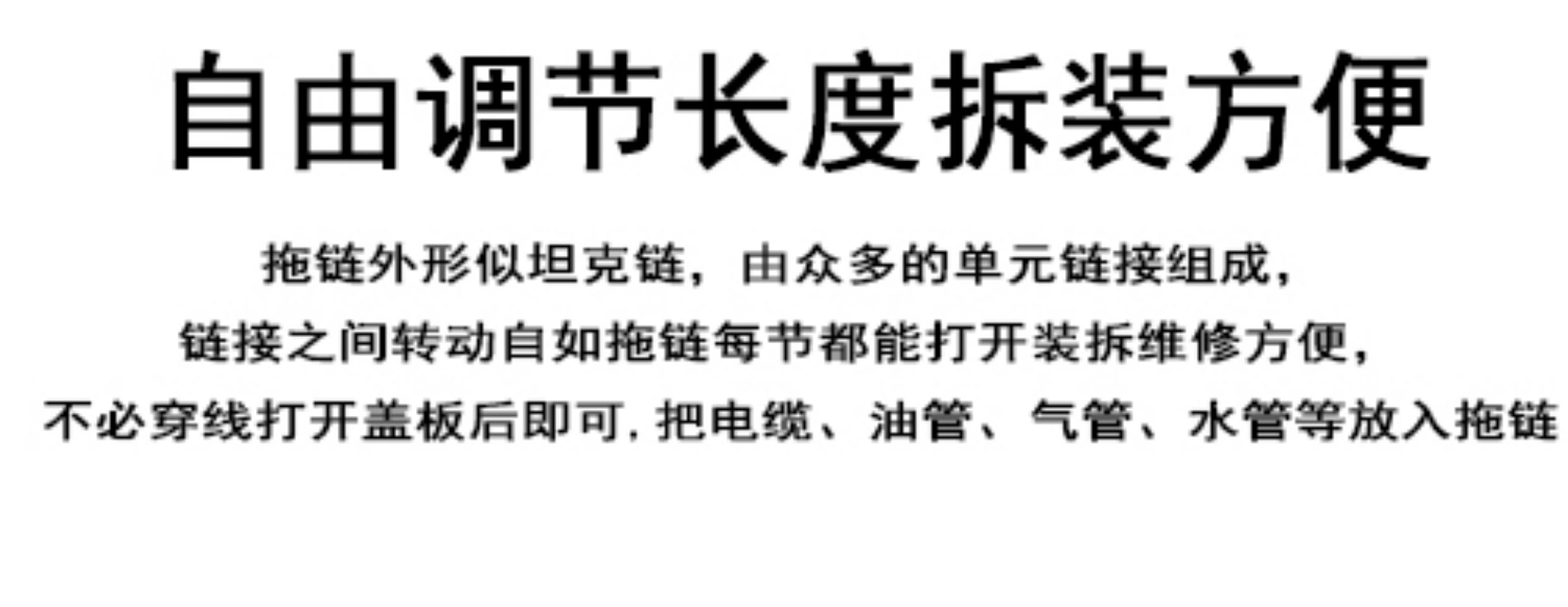 電纜保護鏈條針對油管以及線纜具備良好的保護以及牽引作用。能夠在保護電纜以及油管的前提之下,幫助機械設(shè)備增加美感,可謂是一舉兩得的好選擇。而且,拖鏈還能夠根據(jù)不同的材質(zhì)劃分為塑料和鋼制這兩種類型。縱向發(fā)展的前提之下,能夠隨時幫助自由移動,而且能夠在彎曲的半直徑內(nèi)進行無限拉力。導(dǎo)線的固定以及不同的活動能夠在張力的作用下進行固定,PA66增強電纜保護鏈條運動速度超快,使用頻率更高,導(dǎo)線還能夠在內(nèi)部的精確值中進行分布——電纜保護鏈條向著規(guī)范化標準化駛?cè)敫哔|(zhì)量發(fā)展“快車道”如何選用合適的尼龍拖鏈