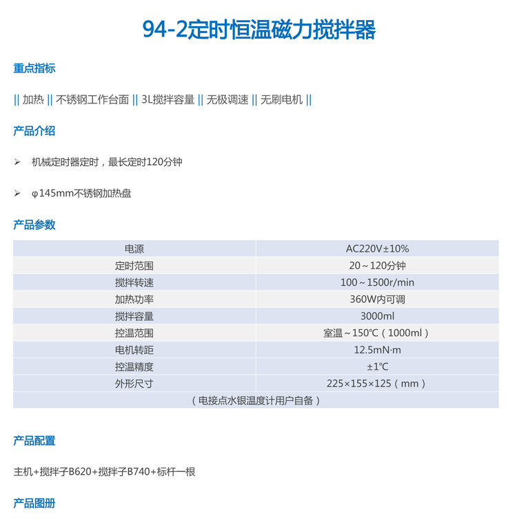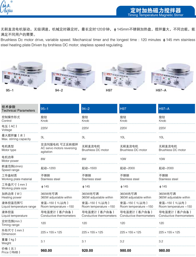 馳久Chijiu/梅穎浦94-2恒溫定時(shí)磁力攪拌器攪拌機(jī)/容積3L