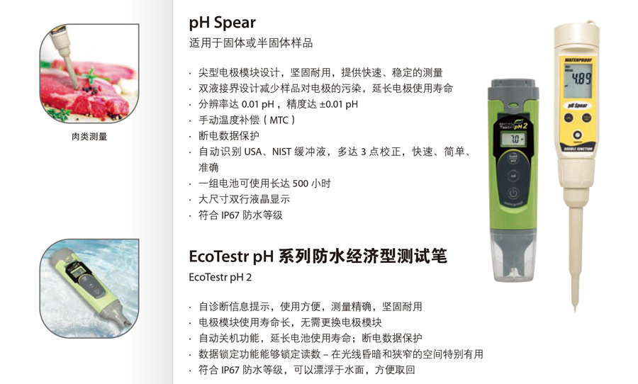· 耐用尖端使pH計(jì)成為測量肉、奶酪和水果等柔軟固體和半固體材料的理想選擇