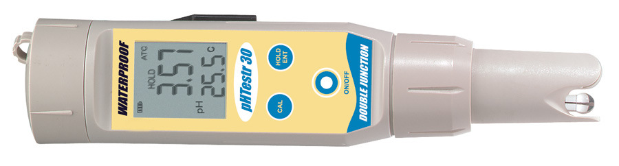 防水式pHTestr 30測試儀非常適合于湖泊和溪流pH檢測等室外應(yīng)用。采用水中飄浮設(shè)計(jì),甚至可在外殼上系上一根繩子,以便輕松收回。Valox?傳感器外殼,可耐受大多數(shù)化學(xué)品。||pHTestr 30測試儀采用可更換傳感器,維護(hù)更輕松。雙液接電極傳感器能夠處理含有硫化物、重金屬和TRIS的廢水及溶液。該電極傳感器采用防堵塞Kynar?液接設(shè)計(jì)和凹嵌式玻璃pH球管,可防止破裂。||可通過鍵盤點(diǎn)擊確認(rèn)操作和訪問各種功能。可通過自動緩沖液識別校準(zhǔn)多達(dá)三個pH點(diǎn),提供美國和NIST標(biāo)準(zhǔn)緩沖液。其他功能包括:自動溫度補(bǔ)償(ATC)、保持功能、自動關(guān)機(jī)功能、自診斷錯誤消息和三段式電池壽命指示燈。