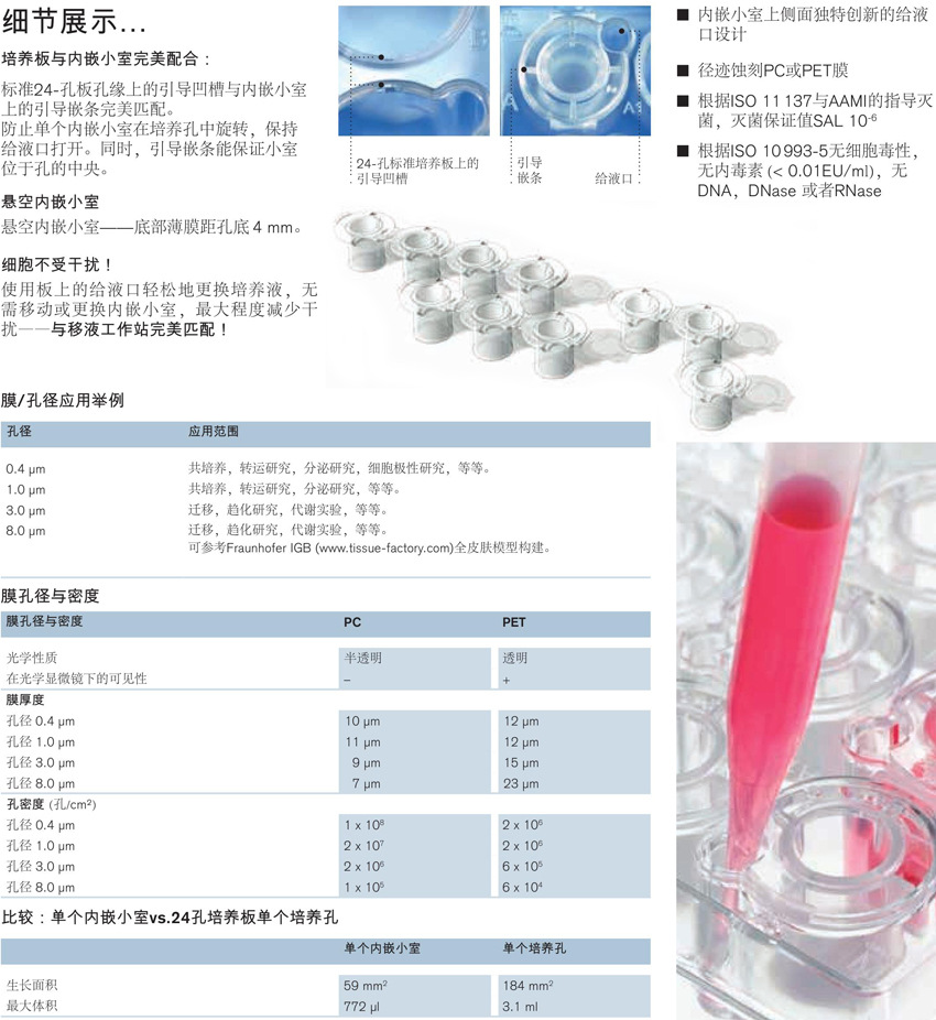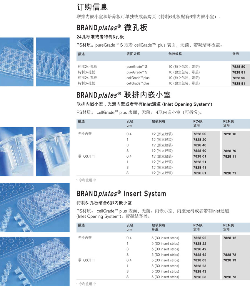 782876 | 單個(gè)內(nèi)嵌小室,13 mm,用于 24/6 孔 BRANDplates?,PET 膜,8.0 μm,BIO-CERT? CELL CULTURE STERILE | 48孔 |