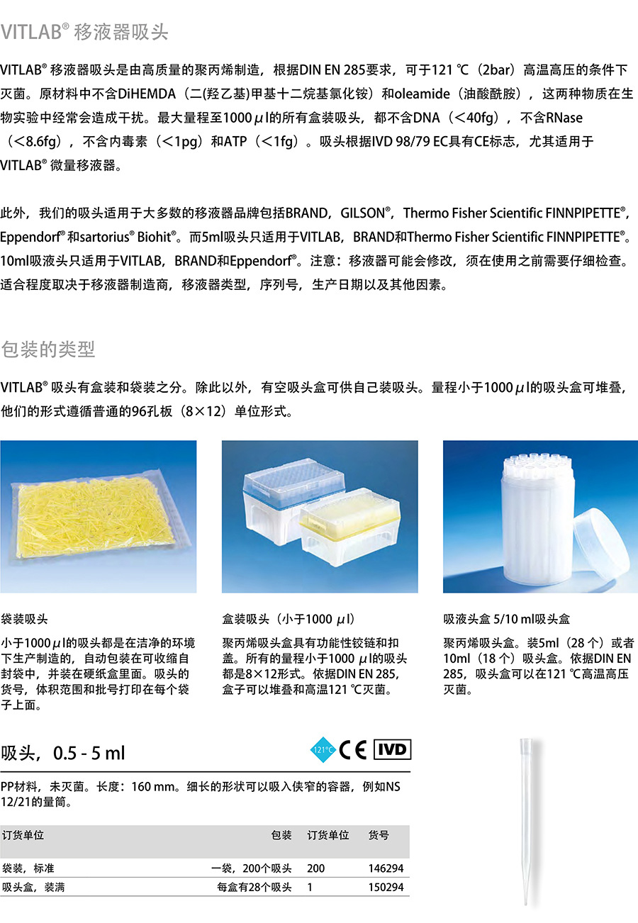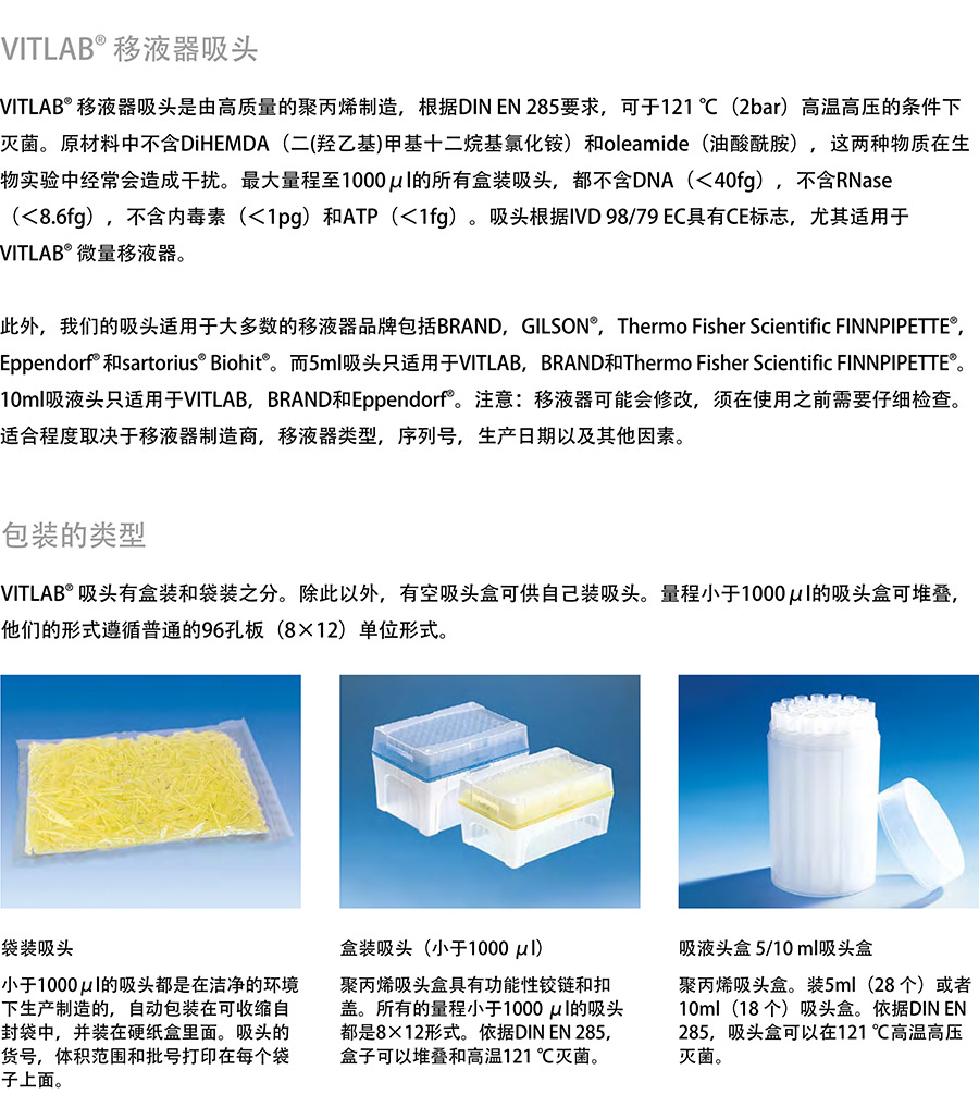 德國-VITLAB-移液器吸頭0.5-5ml未滅菌PP材料CE-IVD標(biāo)志