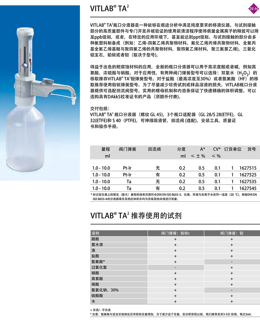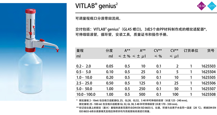 德國-VITLAB-genius2可調(diào)量程瓶口分液器帶回流閥DE-M標(biāo)記可滅菌