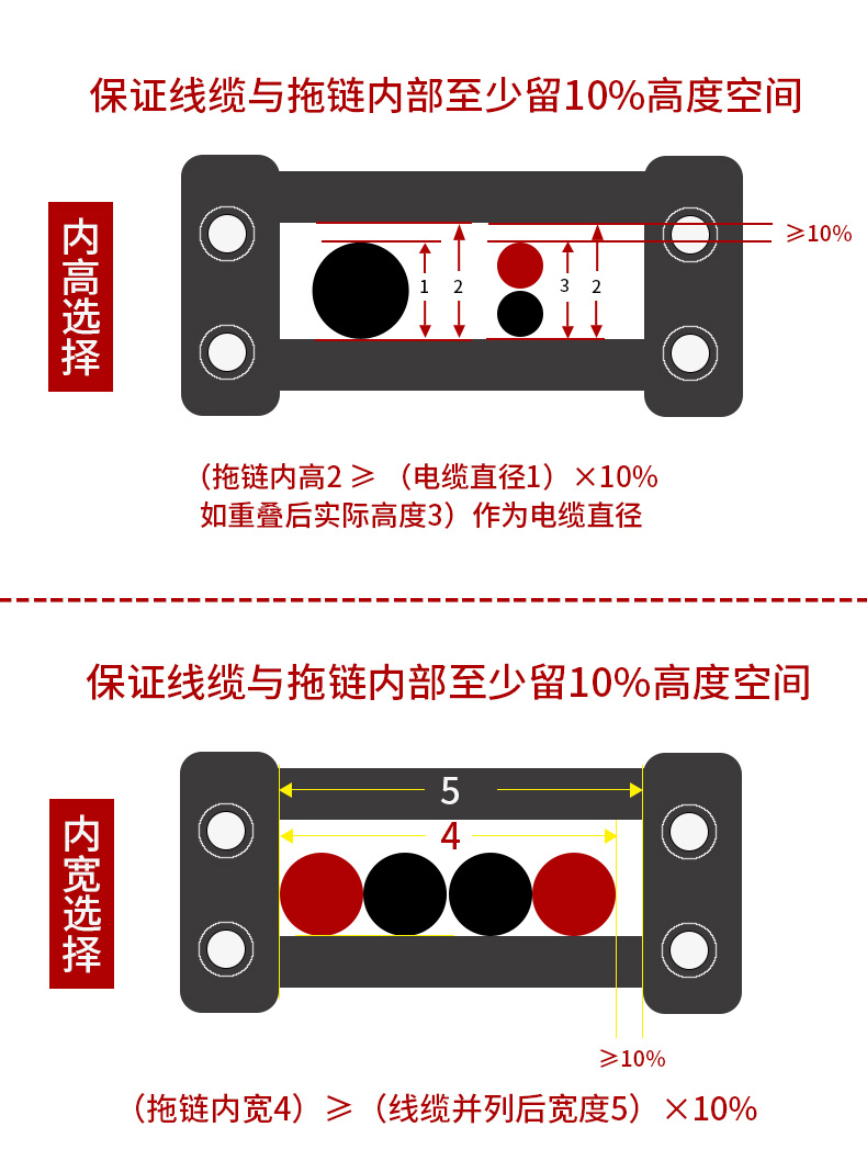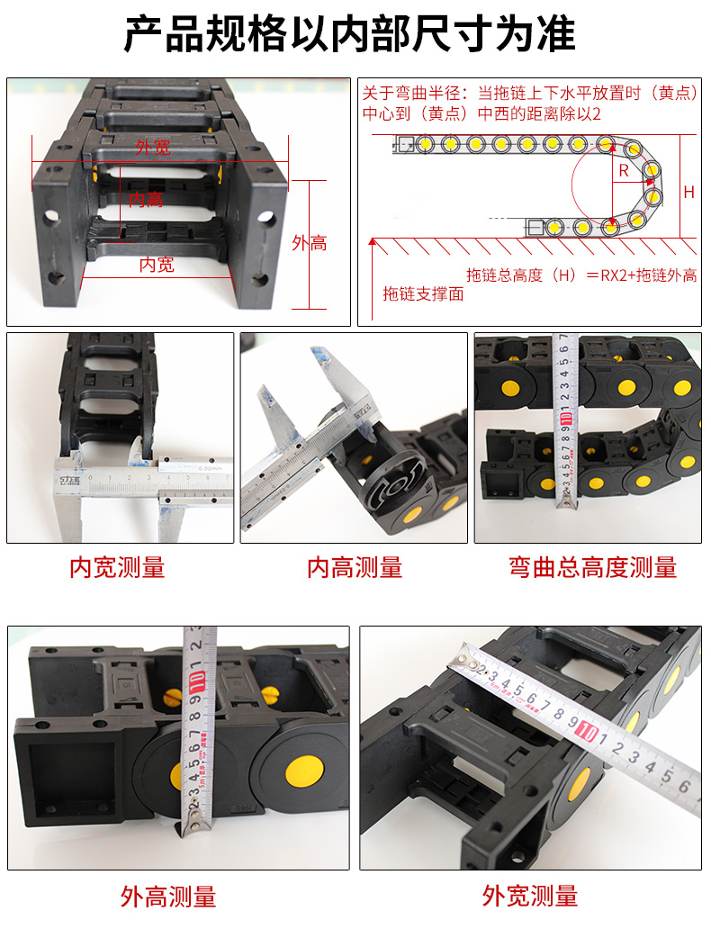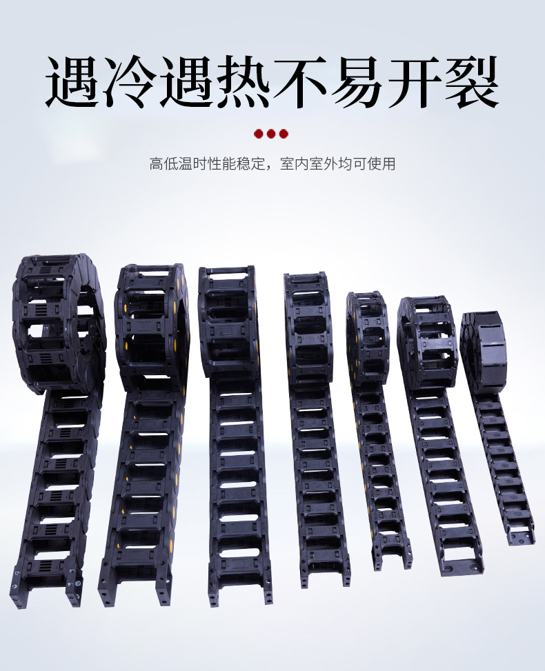 1、適合于使用在往復(fù)運(yùn)動的場合,能夠?qū)?nèi)置的電纜、油管、氣管、水管等起到牽引和保護(hù)作用。
