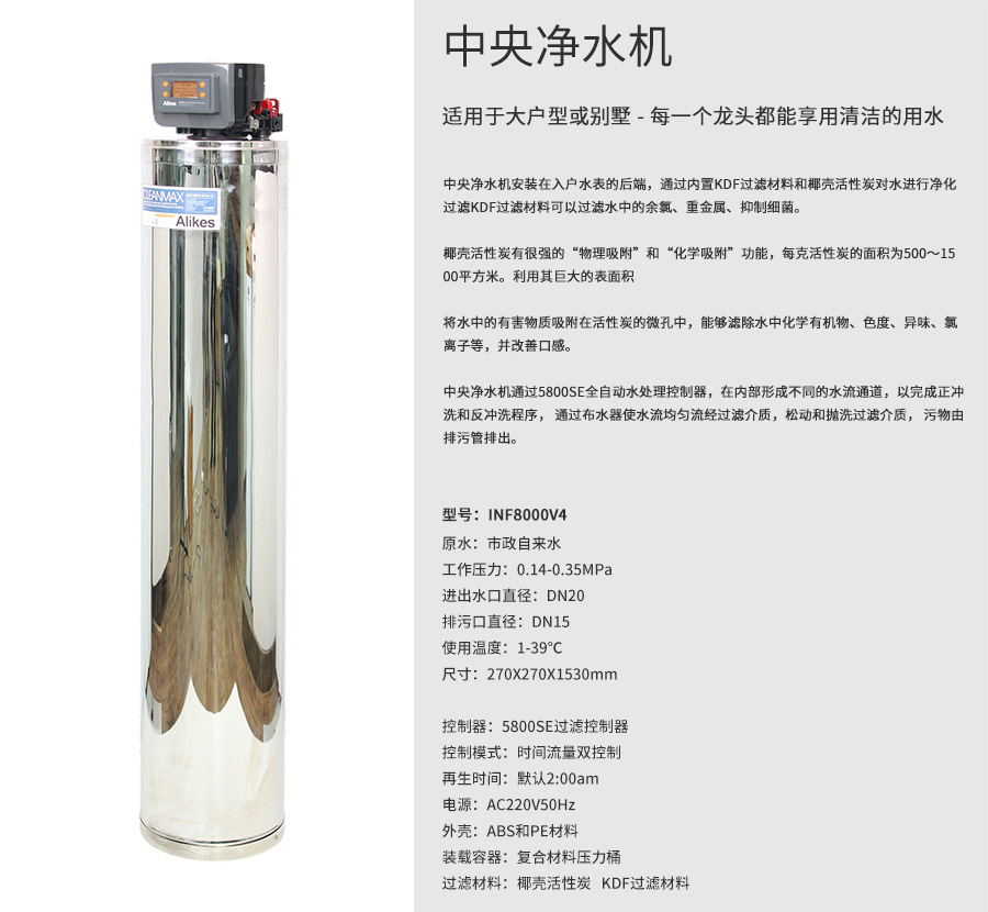 Alikes/愛尼克斯-INF8000v4不銹鋼中央凈水機(jī)大流量全屋凈水器4.5T