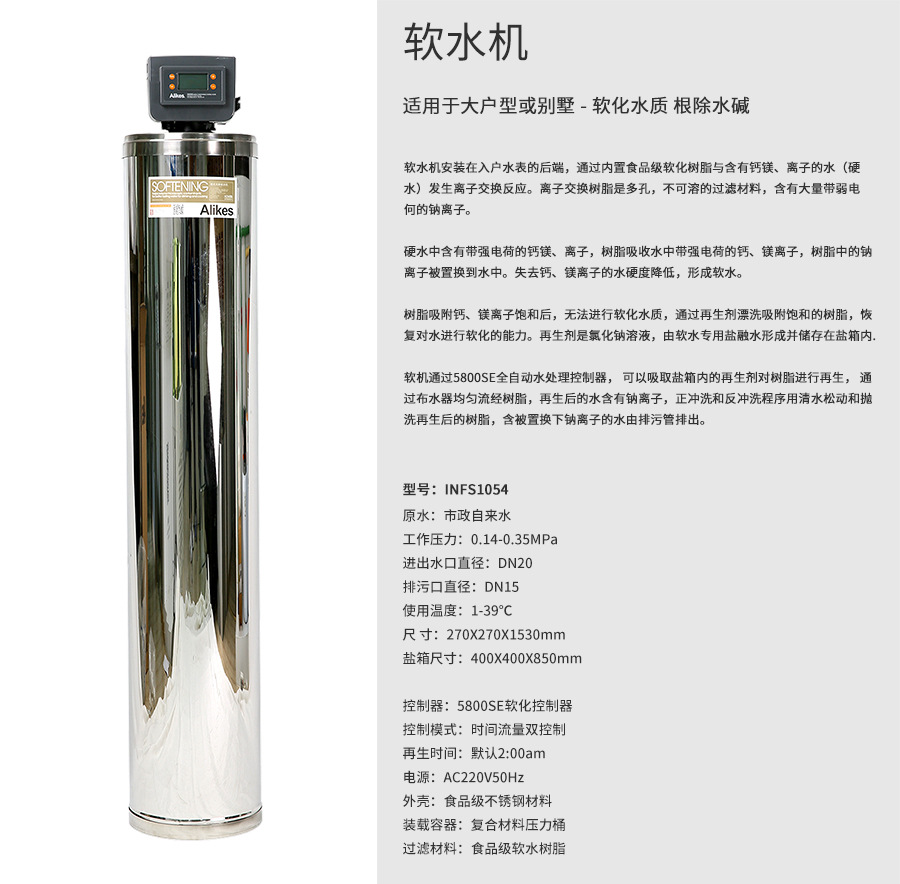 Alikes/愛尼克斯-INS1054中央軟水機軟水器大流量分體機凈水除水堿