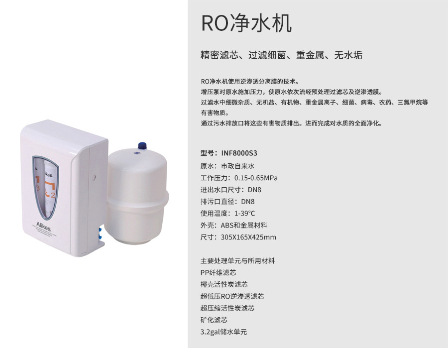 Alikes/愛尼克斯-INF8000S3大流量免插電RO凈水機(jī)家用純凈水直飲機(jī)