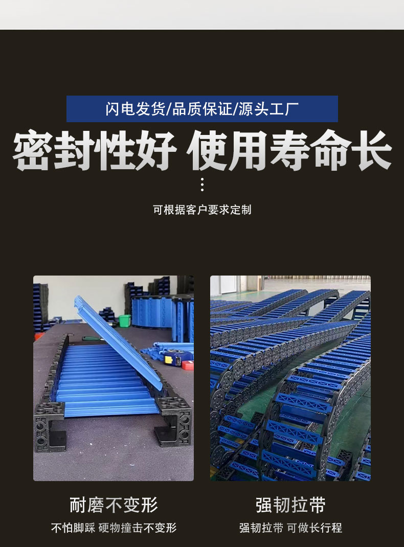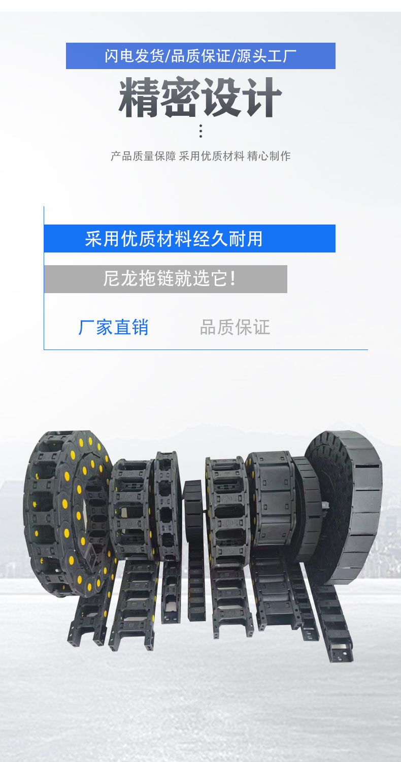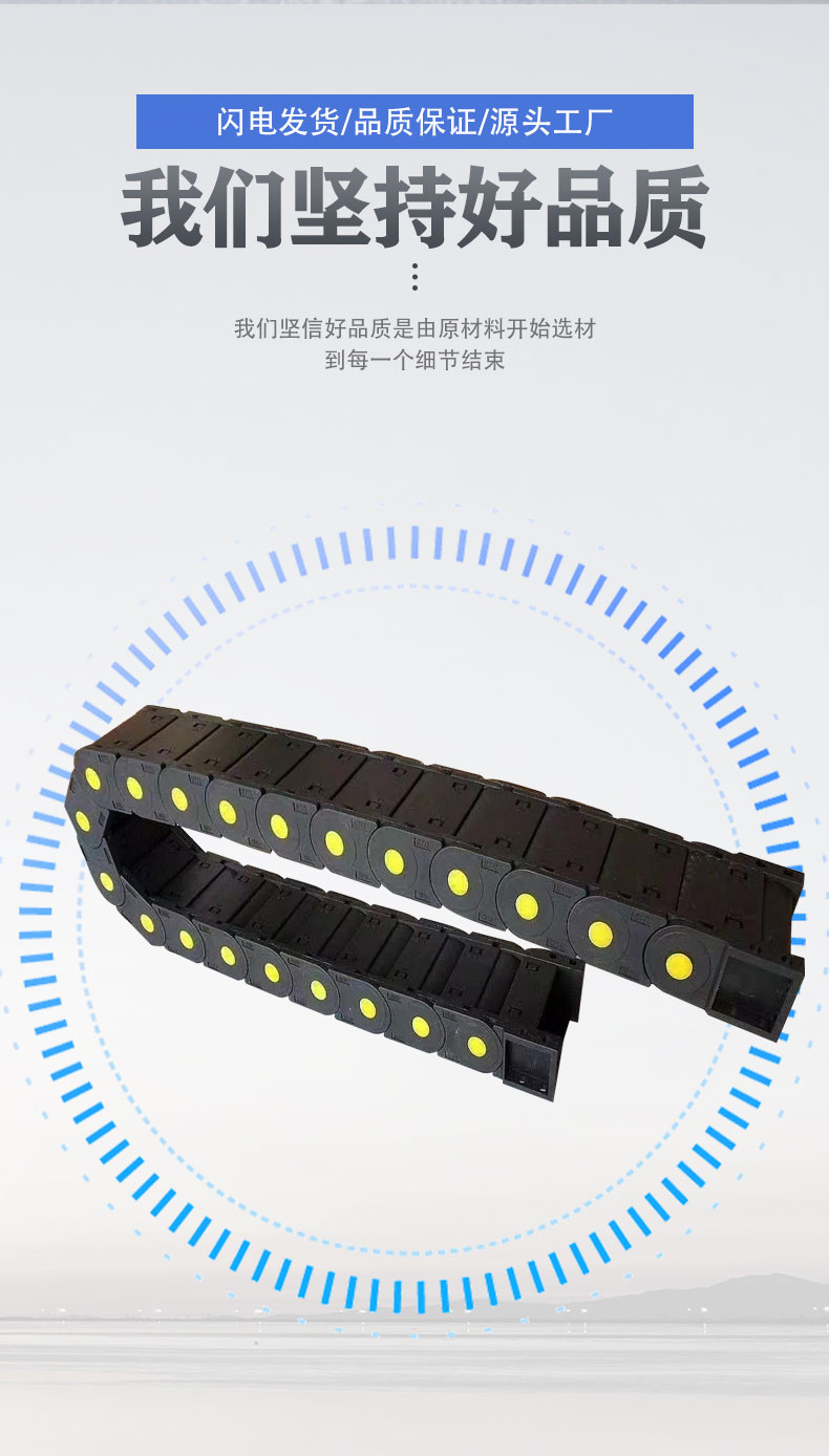 高速耐高溫鋼鋁拖鏈適合于使用在往復(fù)運動的場合,能夠?qū)?nèi)置的電纜、油管、氣管、水管等起到牽引和保護作用。另外拖鏈每節(jié)都能打開,便于安裝和維修。運動時噪音低、耐磨、可高速運動。拖鏈已被廣泛應(yīng)用于數(shù)控機床、電子設(shè)備、石材機械、玻璃機械、門窗機械、注塑機、機械手、起重運輸設(shè)備、自動化倉庫等。