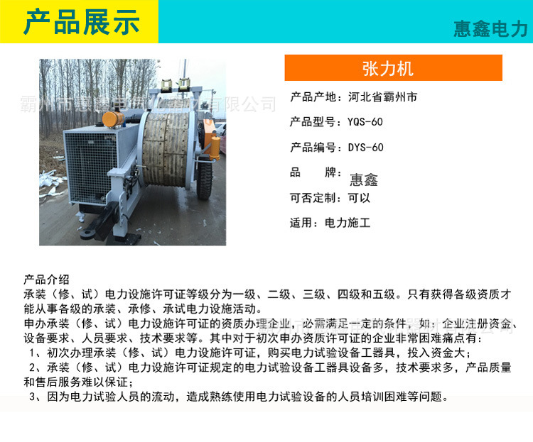 主營(yíng)產(chǎn)品: 放線張力機(jī), 牽引機(jī), 機(jī)動(dòng)絞磨, 電纜輸送機(jī), 電纜牽引機(jī), 放線滑車, 立桿機(jī), 卡線