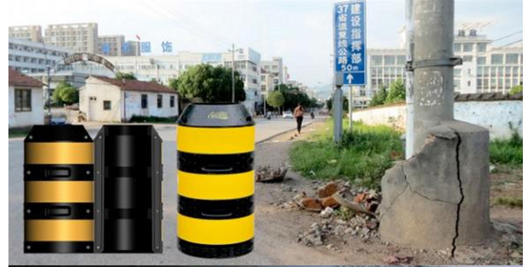 電線桿防撞桶-高壓線桿保護(hù)桶-紅白黃黑電力警示防撞墩可定制廠家