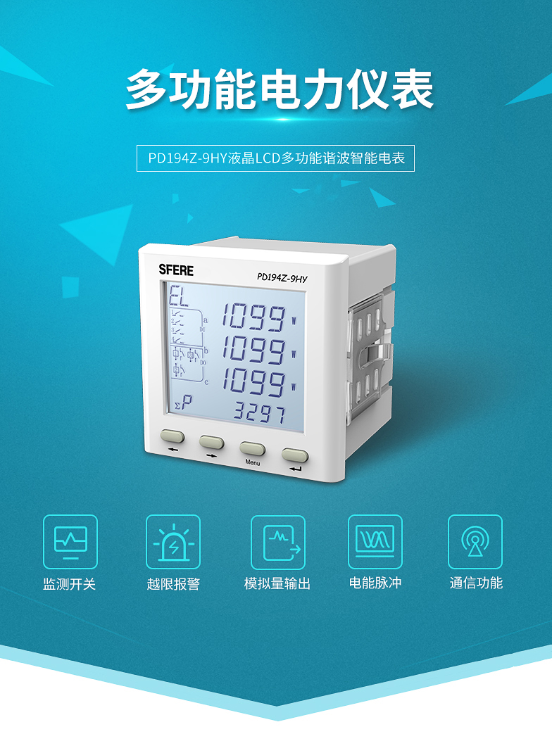 斯菲爾PD194Z-9HY液晶LCD多功能諧波智能電表電力儀表廠家