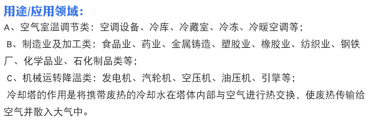 按應(yīng)用領(lǐng)域分:①工業(yè)型冷卻塔;②空調(diào)型冷卻塔。