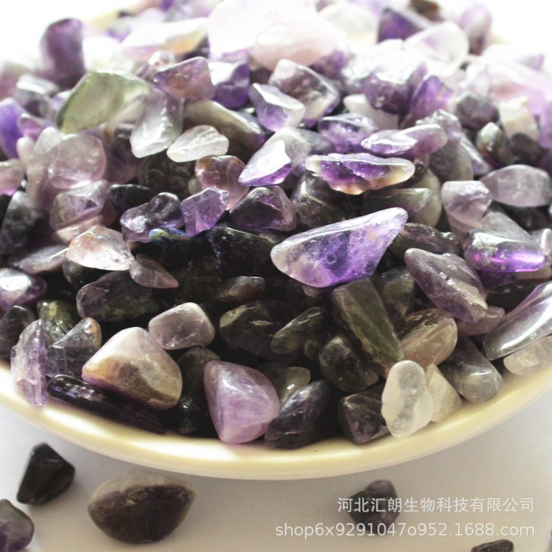 水晶碎石紫水晶倒角拋光紫水晶碎石消磁專用魚缸裝飾水晶枕頭