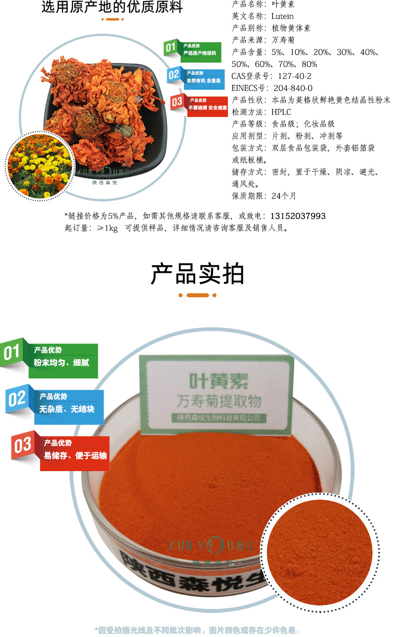 葉黃素5-80%陜西森悅食品級(jí)萬壽菊提取物保健食品化妝品原料