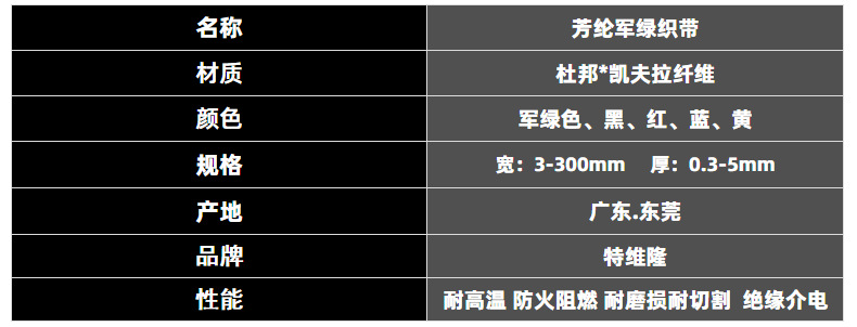 特維隆-廠家批發(fā)1.5x20mm軍綠色芳綸編織帶-耐高溫-防火阻燃