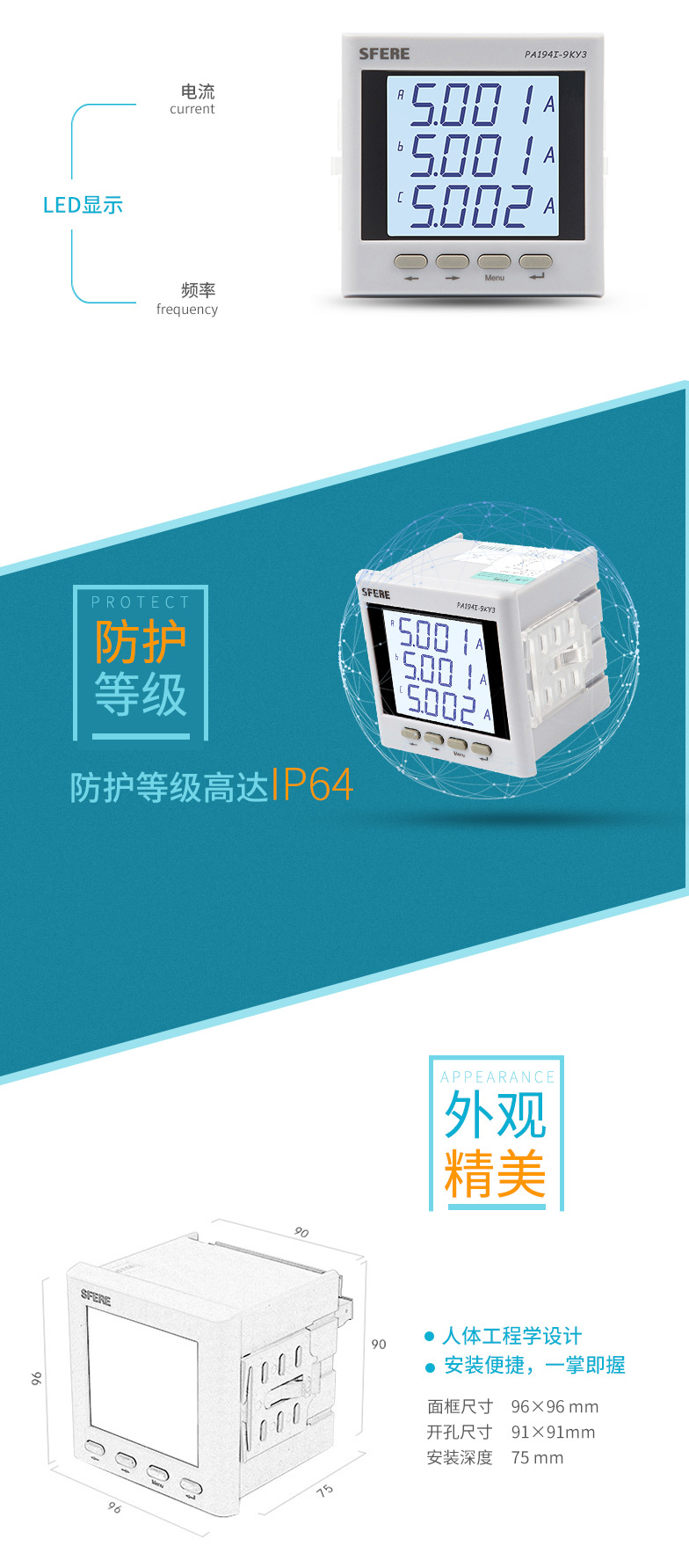 江蘇斯菲爾PA194I-9KY3交流三相數(shù)顯電流表