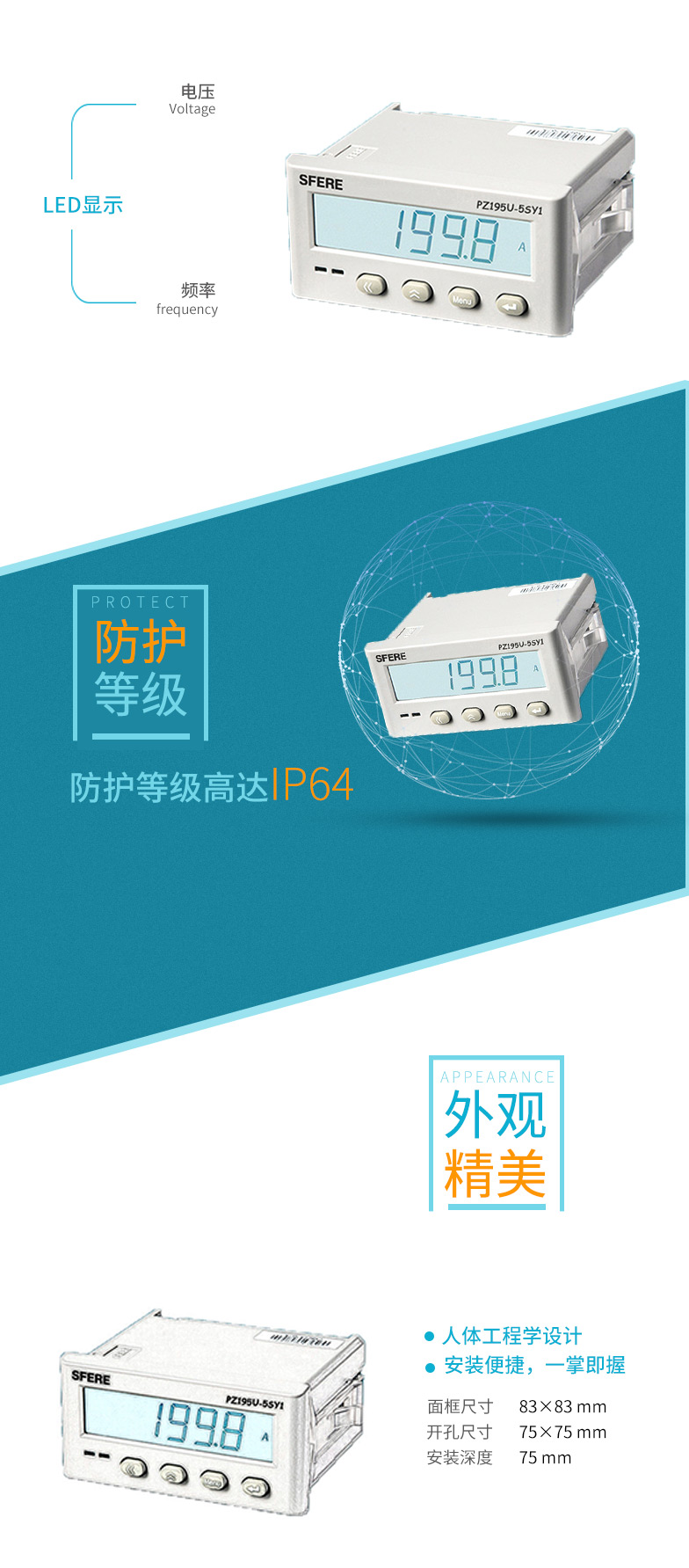 江蘇斯菲爾PZ195U-5SY1直流單相電壓表