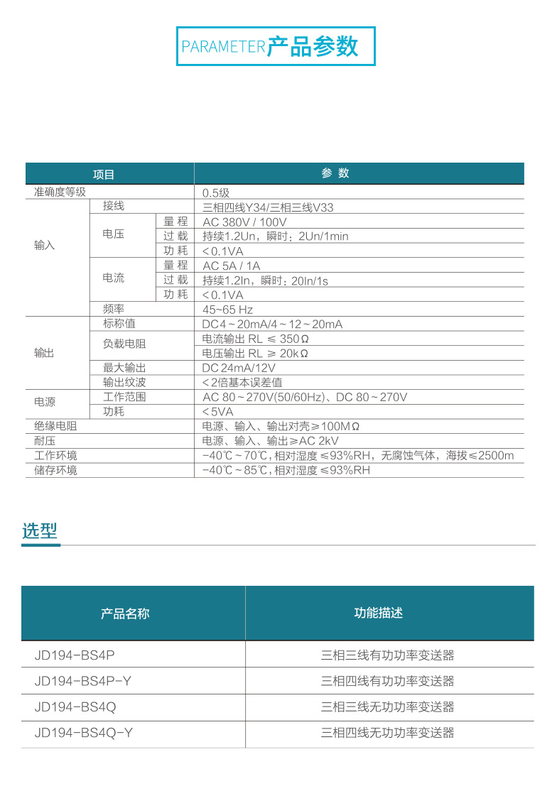 江蘇斯菲爾JD194-BS4P-Y三相四線有功功率變送器