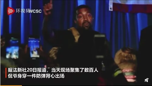 據(jù)法新社20日?qǐng)?bào)道,當(dāng)天現(xiàn)場(chǎng)聚集了數(shù)百人,“侃爺”身穿一件防彈背心出場(chǎng),他還把后腦勺的發(fā)型剃成了“2020”的形狀。