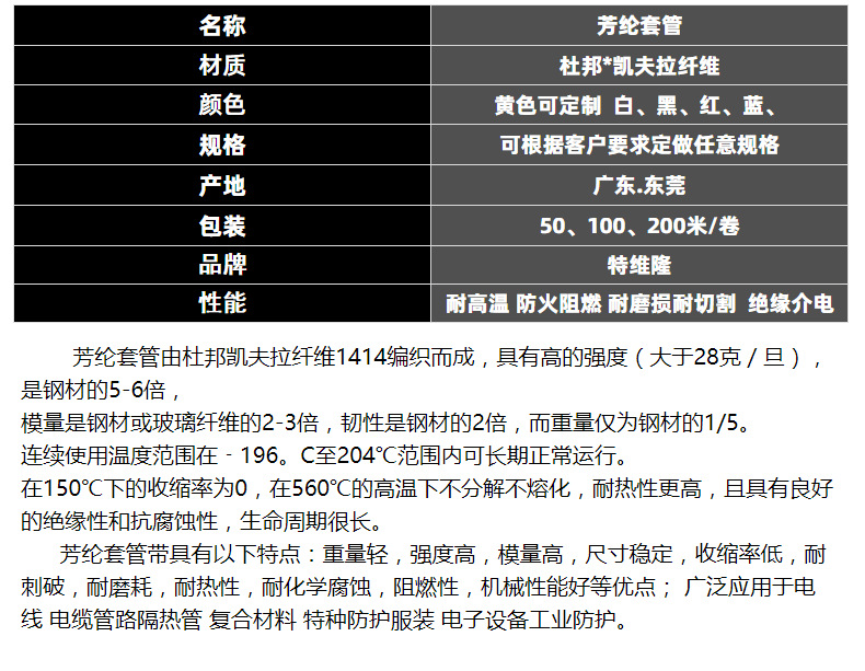 特維隆芳綸套管-隔熱防護套管-電纜電線保護套管