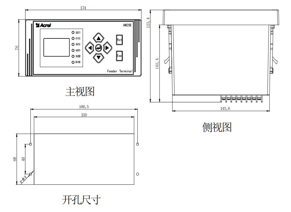AM2SE-V(豎版)注:1、方孔尺寸為 150*68;2、開孔尺寸以毫米(mm)為單位。