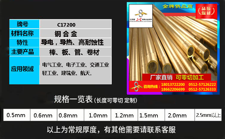 供應(yīng)銅材C17200鈹青銅管QBe2鈹銅管價(jià)格銅合金鈹銅材可定做加工
