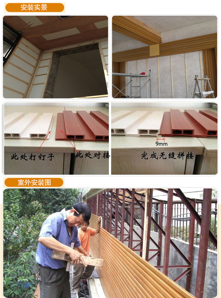 6.便利性---產(chǎn)品可裁、可鋸、可刨、可釘、可漆、可粘接、產(chǎn)品具有優(yōu)秀的工業(yè)設(shè)計(jì),大多采用插口、卡口和榫接的方式進(jìn)行設(shè)計(jì)的,因此,安裝省事省時(shí),速度極快。安裝簡(jiǎn)單、施工簡(jiǎn)便。