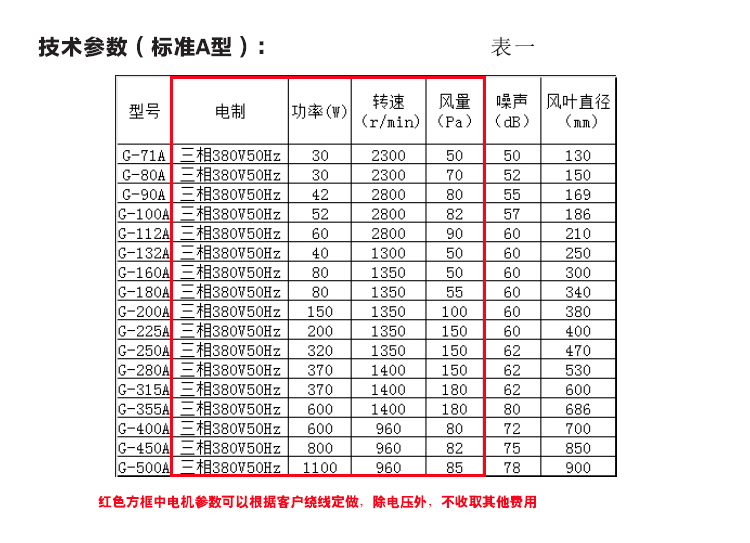 配套電機功率 G-200,G-200A,G-200B,BG-200A,BG-200B